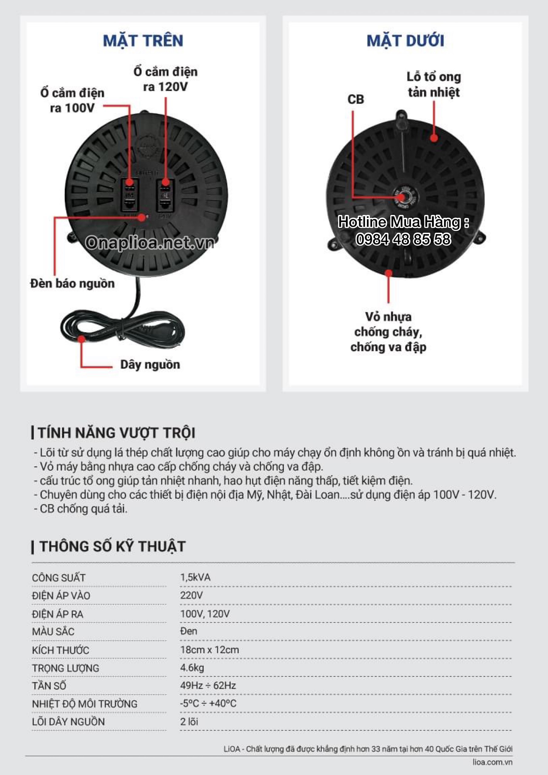 - Đổi nguồn lioa 2000va là loại công suất lớn được dùng cho các thiết bị như , Bếp từ , máy pha cà phê , máy rang cà phê , nồi cơm điện , bếp lẩu , dàn âm thanh nhật nội địa , amply denon chạy điện 100v và các thiết bị khác