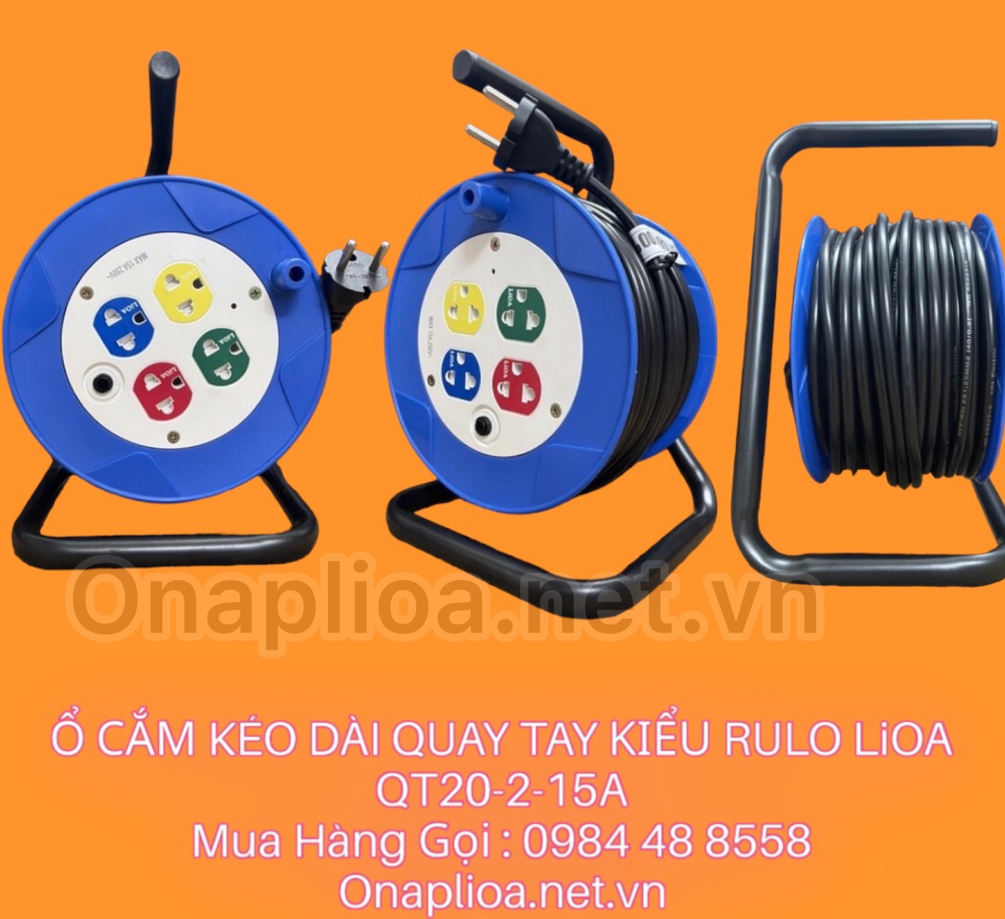 Ổ cắm kéo dài quay tay kiểu rulo LiOA QT20-2-15A - Ổ điện Lioa kéo dài 20m xách tay