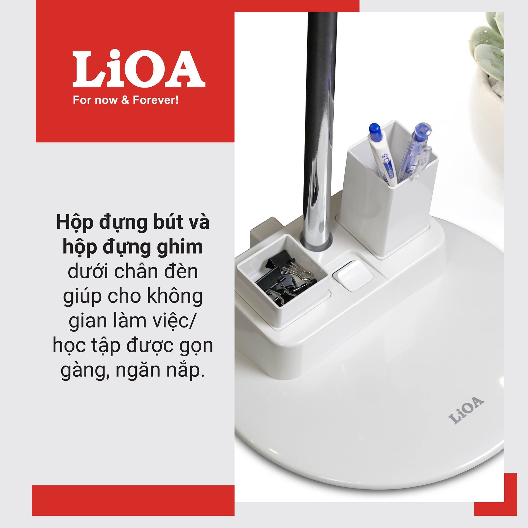 - Hộp đựng bút và hộp đựng ghim dưới chân đèn giúp cho không gian làm việc/ học tập được gọn gàng, ngăn nắp.