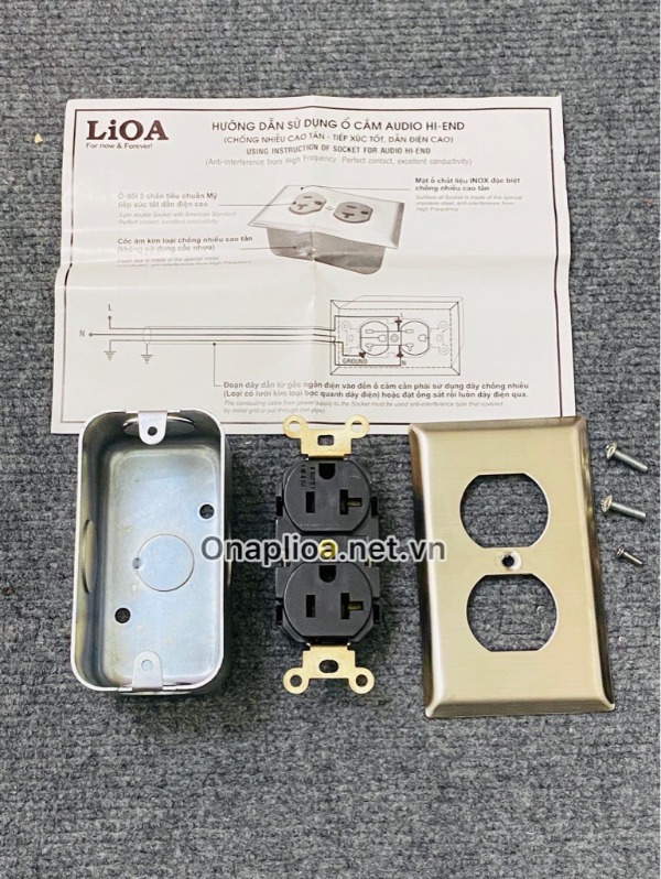 Ổ cắm đôi âm tường chống nhiễu LiOA : với mặt ổ chất liệu inox đặc biệt, ổ đôi 3 chân tiêu chuẩn Mỹ tiếp xúc tốt dẫn điện cao, cốc âm kim loại chống nhiễu cao tần (không sử dụng cốc nhựa) đảm bảo được chất lượng tốt cho người sử dụng.