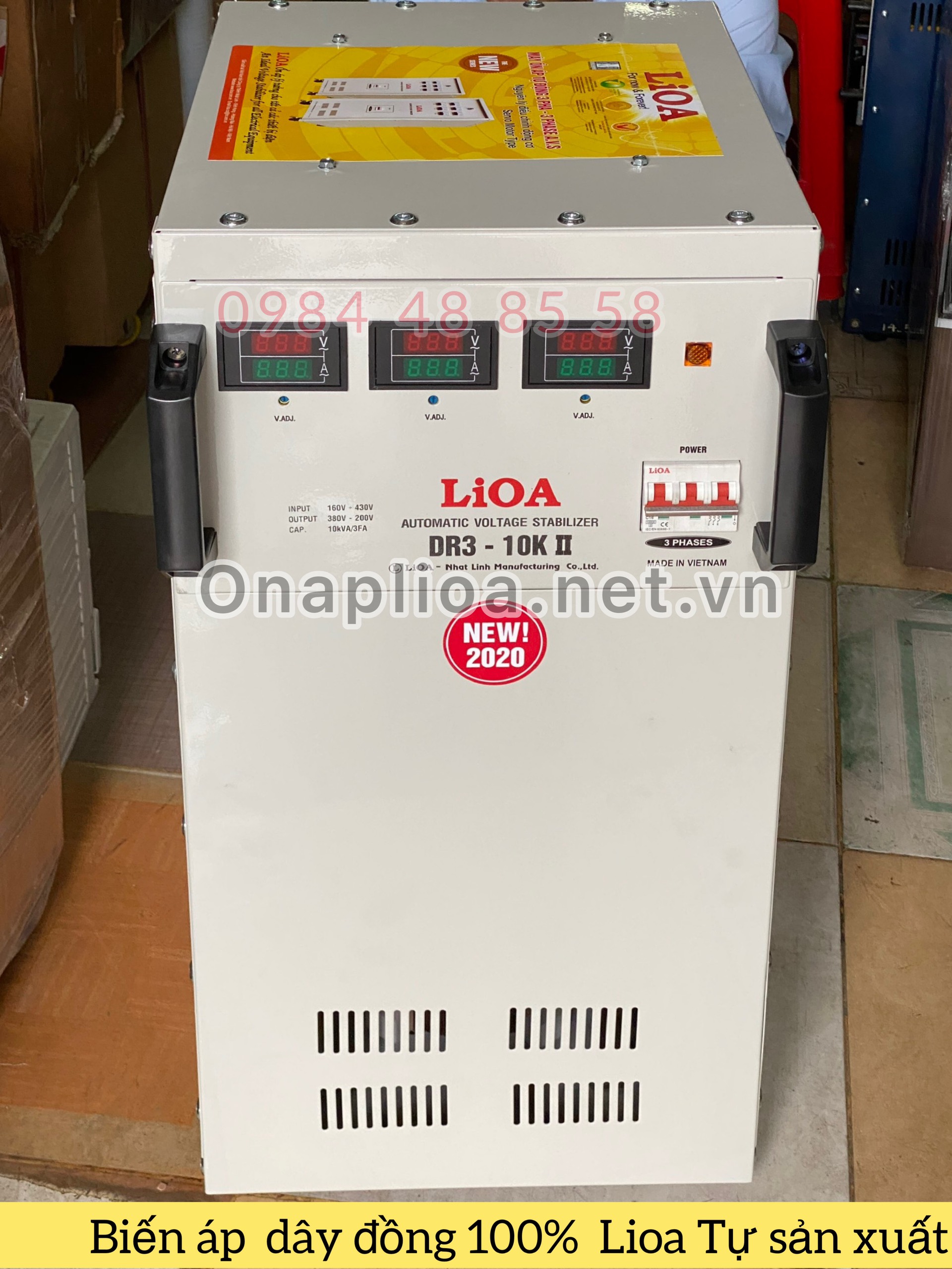 - Ổn áp LiOA 10KVA DR3-10K II thế hệ mới có đồng hồ LED hiện thị điện áp chính xác thích hợp cho mọi gia đình , thiết kế bắt mắt , đồng hồ có độ bền cao , giảm các mối nối trong máy tránh hiện tượng move với các đầu cos như ở các model đời cũ thường xảy ra trong vài năm sử dụng