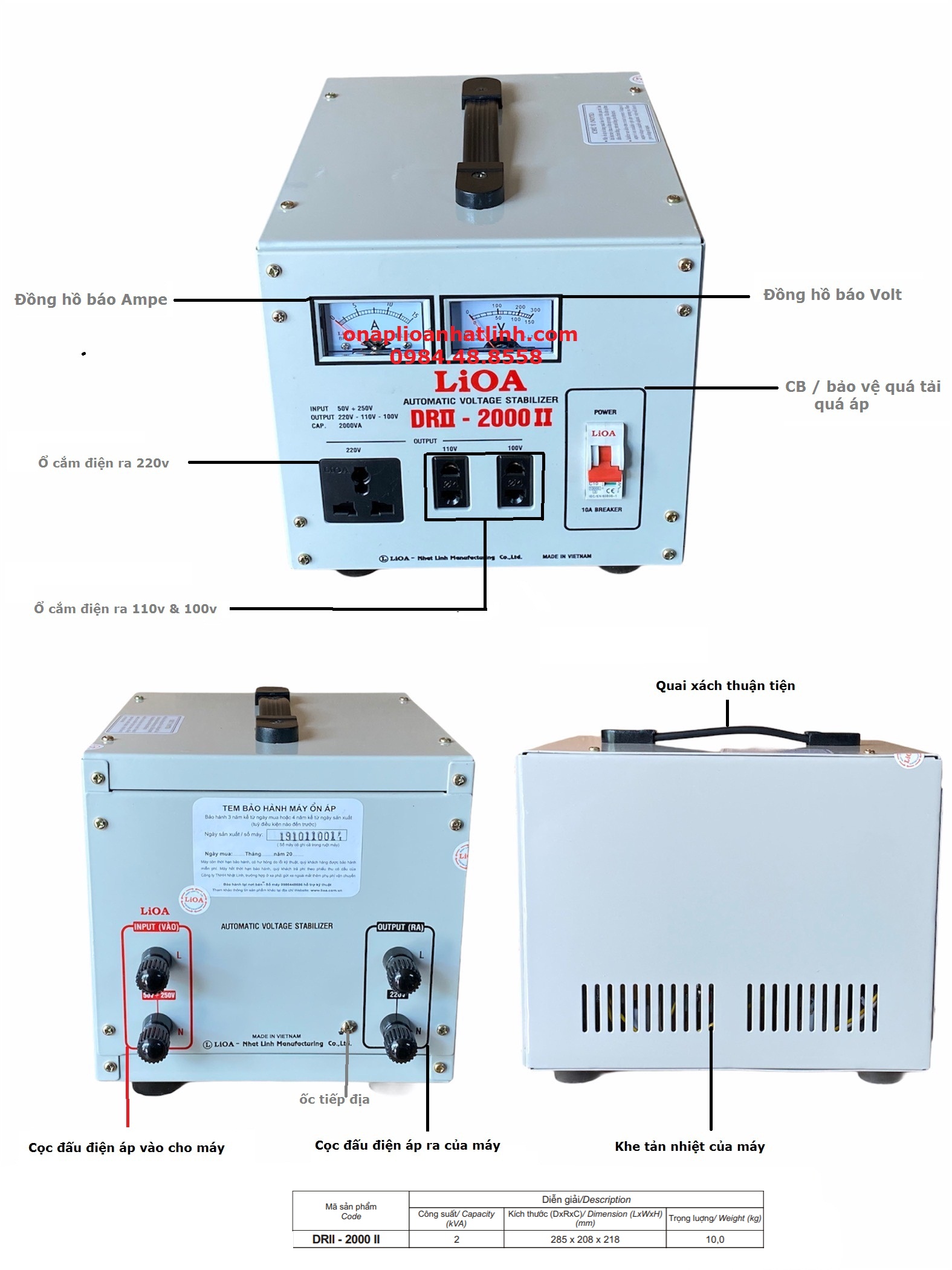 Ổn áp lioa 2KVA, LIOA DRII-2000II , LIOA 2KVA , 2000W