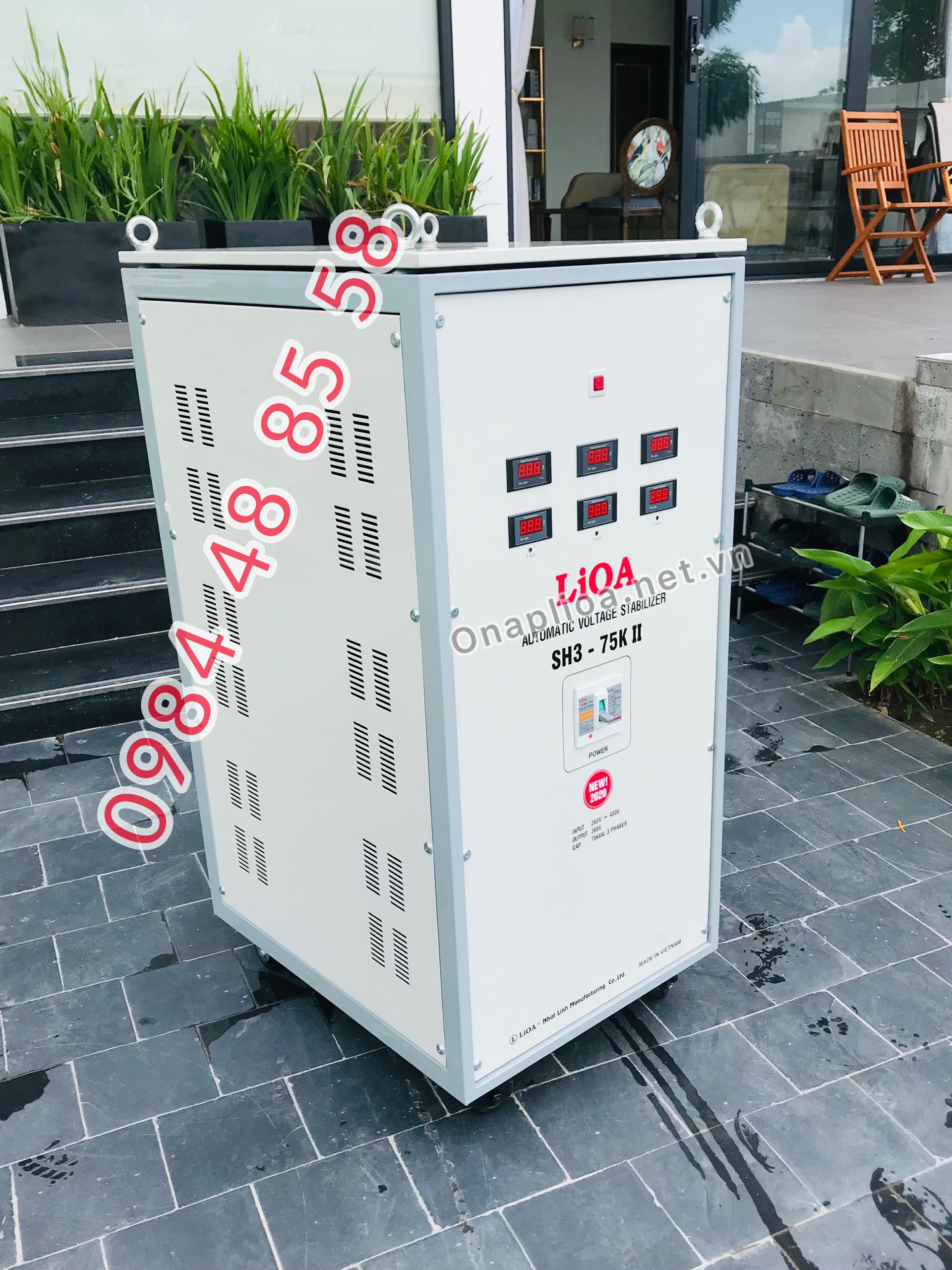 - Máy ổn áp lioa SH3-75K II Thế hệ mới có dải điện áp đầu vào 3 pha 260v - 430v là loại máy mới nhất được trang bị ĐỒNG HỒ ĐIỆN TỬ ( LED ) ĐO VÔN VÀ AMPE riêng biệt giúp quý khách hàng quan sát rõ hơn và có độ bền cao , thay thế sửa chữa nhanh hơn chỉ bằng 1 giắc cắm , rút ngắn thời gian bảo hành sữa chữa khi máy có sự cố