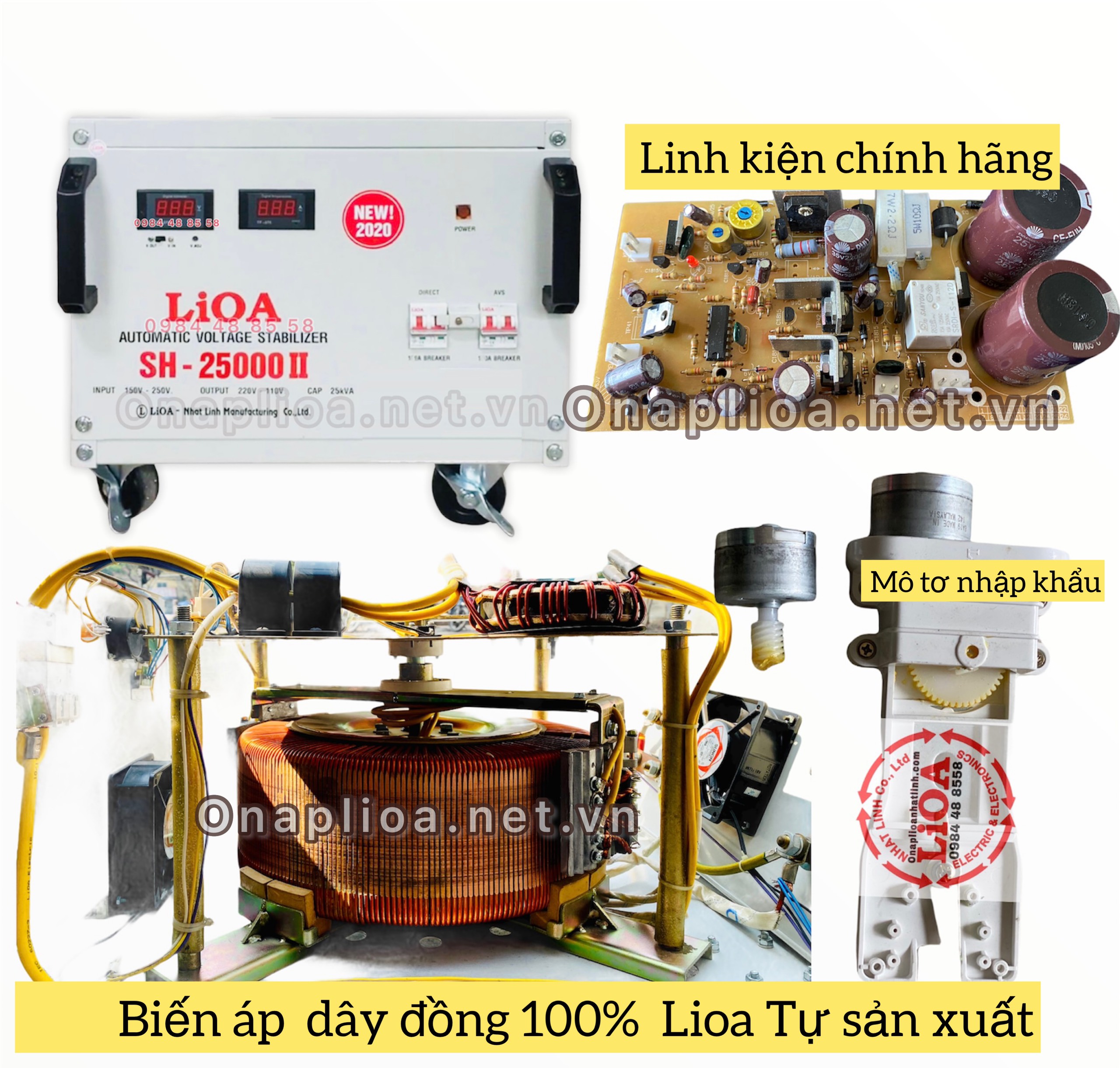 Máy ổn áp lioa 25kva được sản suất từ trước Đến nay. máy được làm bằng dây đồng 100% từ cọc đấu nối đến dây dẫn và biến áp dạng xuyến đều là những loại linh kiện tốt nhất