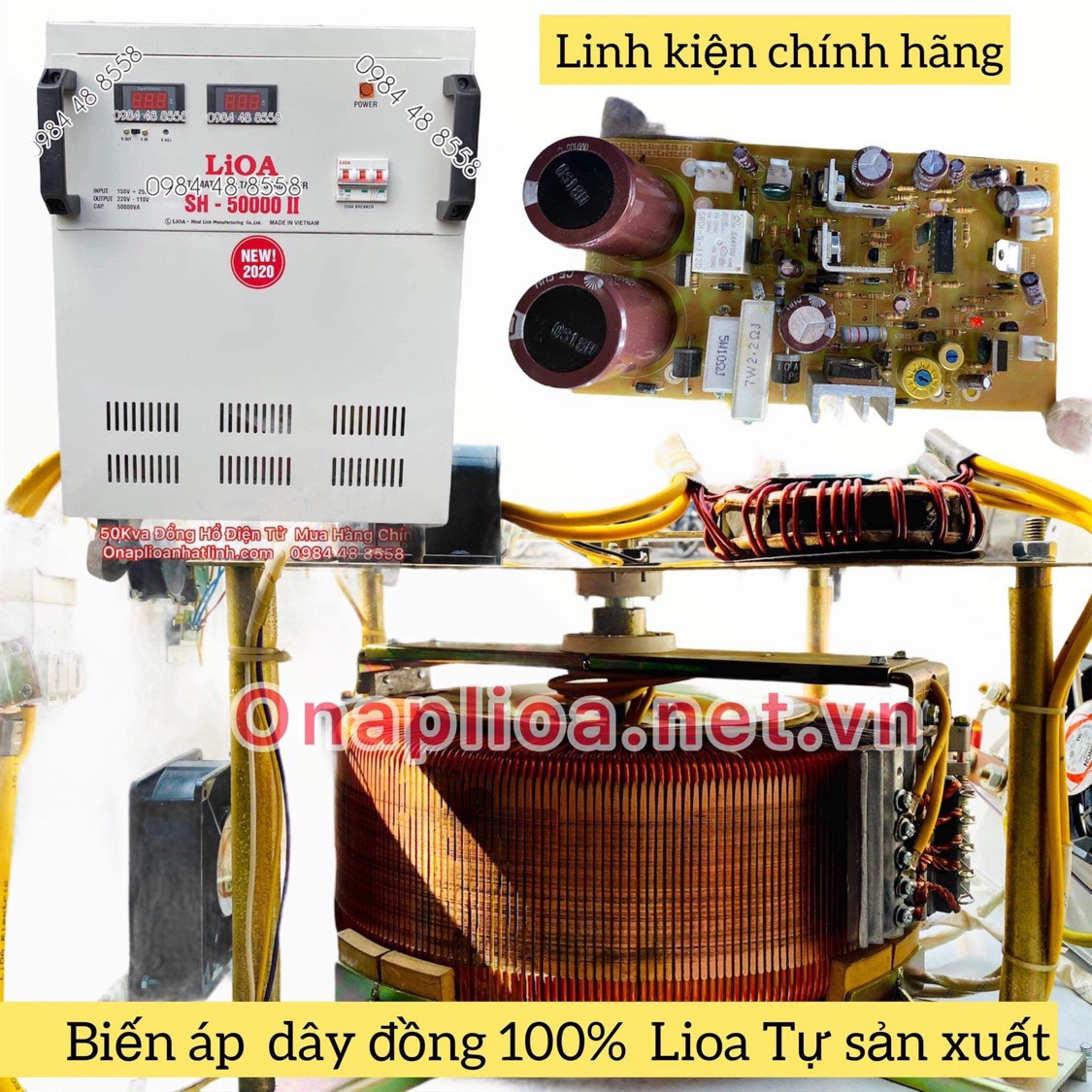Máy ổn áp lioa 50kva điện áp đầu vào từ 150v - 250v được sản suất ,làm bằng dây đồng 100% từ cọc đấu nối đến dây dẫn và biến áp dạng xuyến đều là những loại linh kiện tốt nhất !