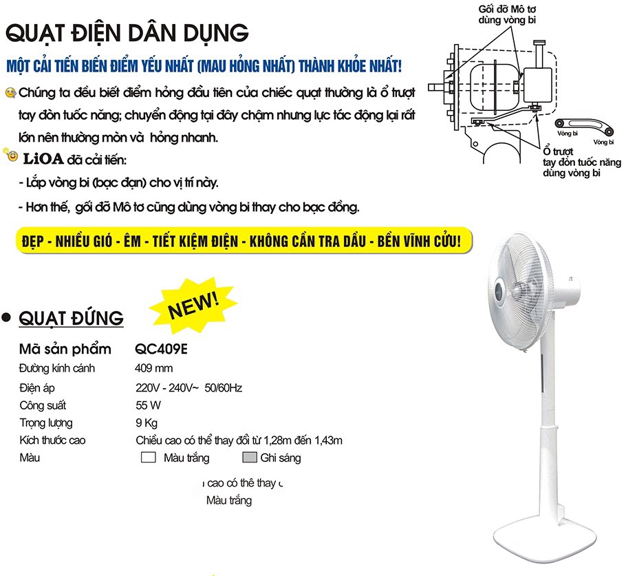 Đẹp- Nhiều gió- Êm- Tiết kiêm điện- Không cần tra dầu- Bền vĩnh cửu!
