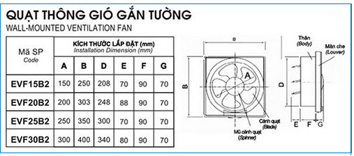 Quạt thông gió gắn tường EVF25B2
